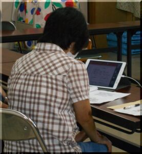 オンライン環境が難しい方も、当センターの別室から参加しました。講師が参加者と一緒に考えながら講座をすすめ、質問があればその場で 応じ、楽しい学習会となりました。